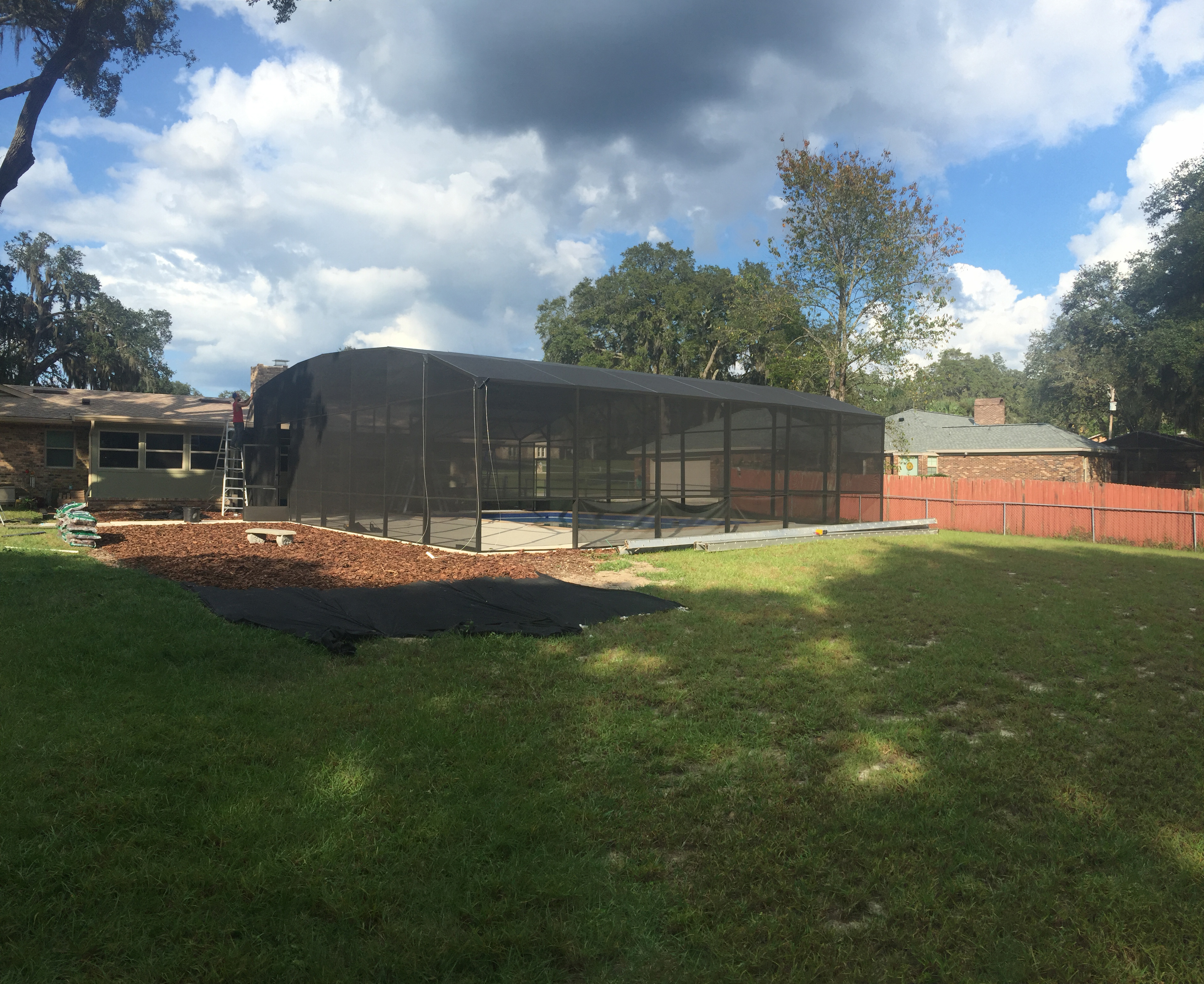 Two story roof re screen.